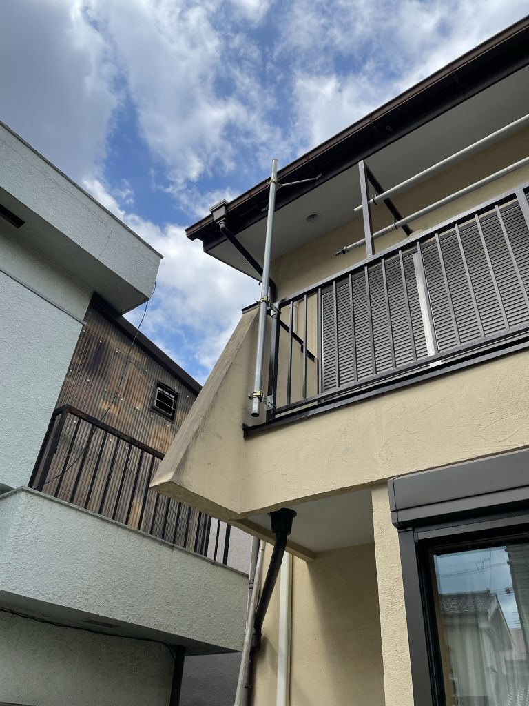 ベランダのメンテナンスのため全てのアンテナを撤去していたが、ようやく気候も落ち着いてきたので、とりあえずベースとなるマストを1本(足場パイプ2.5m)だけ復活した。これに4mのマストを抱かせてアンテナを上げる。