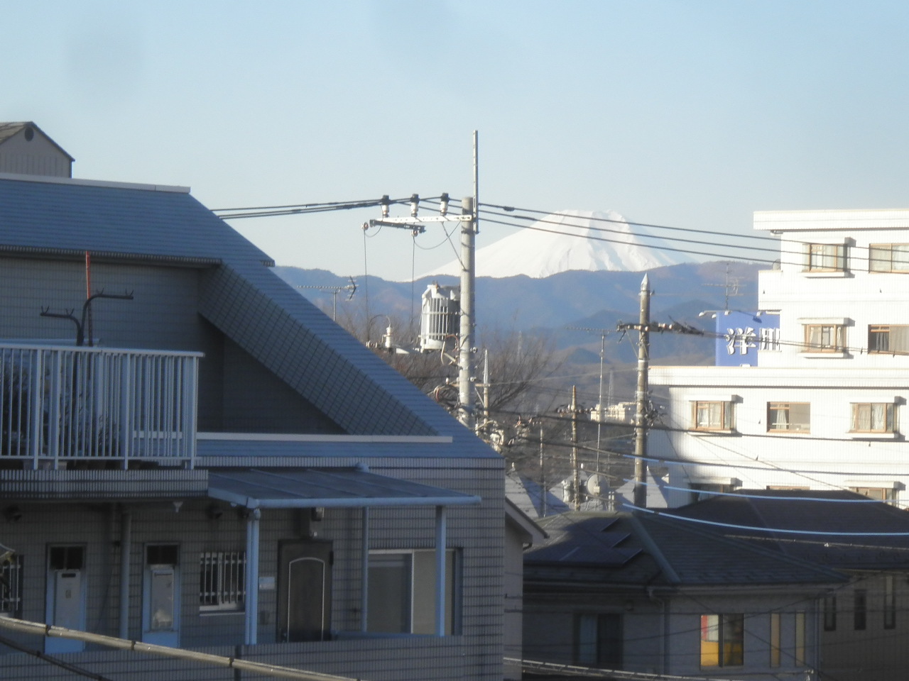 お天気がよいので久しぶりに屋根に上がって富士山を見た。