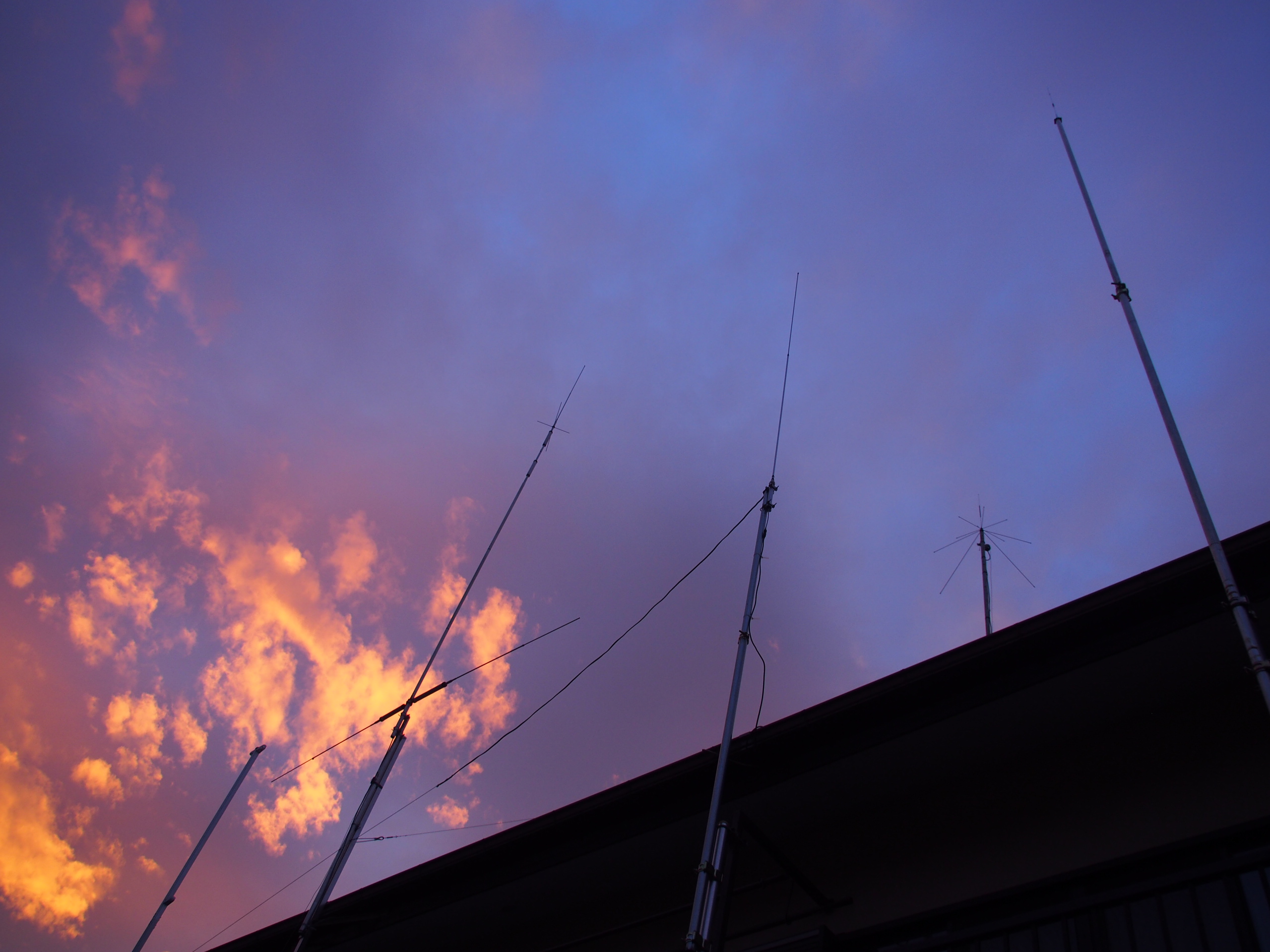 そのマストの上に50-144-430MHzの3バンドモービルホイップSB14を上げてみた。(写真の一番右) 430MHzで三郷の局にレポートをもらったら、これまでのディスコーンアンテナ(カバー写真)よりもはるかに強くなったようだ。