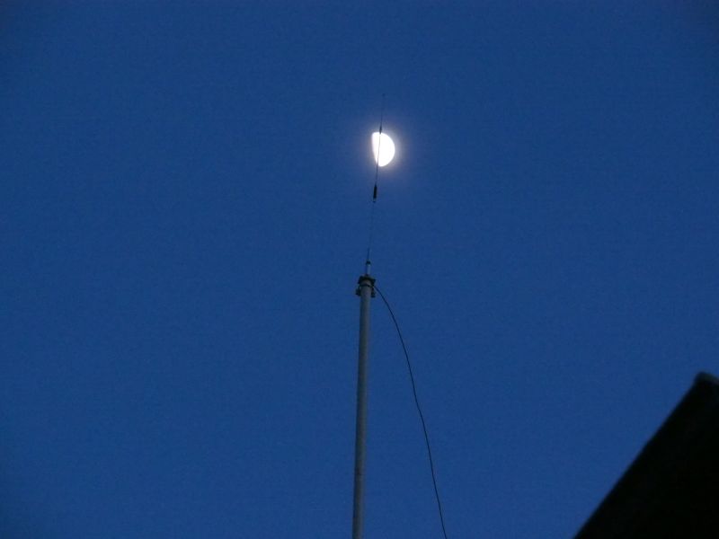 今夜は月夜、空中高く上げたモービルホイップの後の半月が美しい。