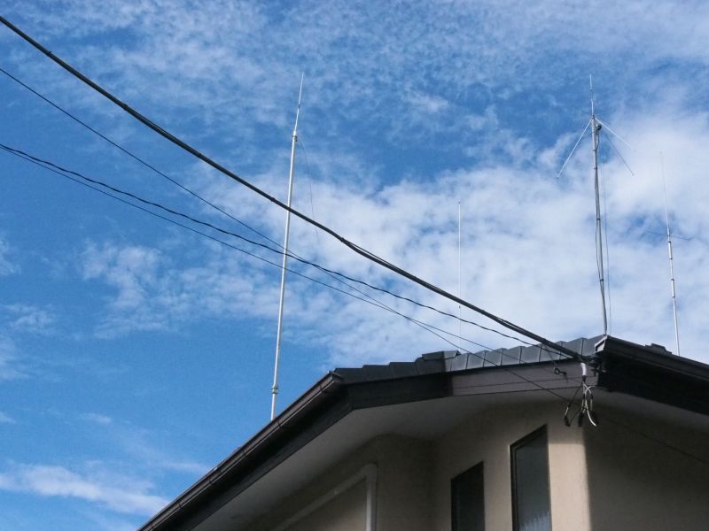 涼しいうちにと思って、今朝6時頃屋根上に上がり、ディスコーンアンテナの下にぶら下げてあった20mバンドのダイポールエレメントを撤去。もう涼しくはなかった。