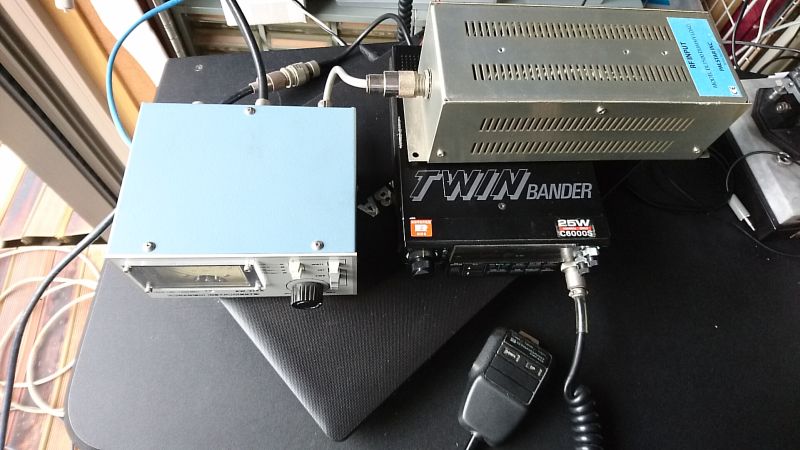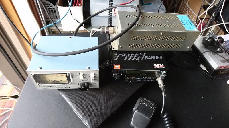 トランシーバ=====被測定ケーブル=====通過型電力計===ダミーロード