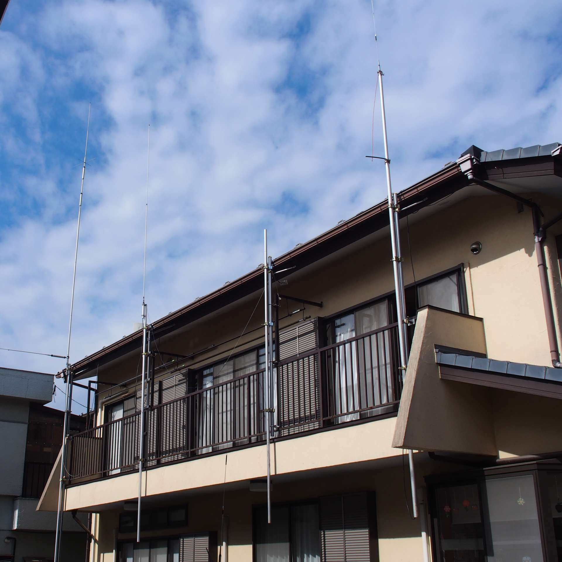 3.5-7MHz帯アンテナ CP8040 の脇に残っていたモンキーラダー、もはや屋根に上がる必要がないので撤去した。