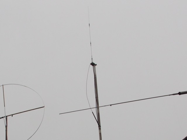 最初アルミパイプのマストに直接取り付け、同軸ケーブルをマスト沿いにまっすぐ下ろしてみたときには、VSWRが3以上になってしまいアンテナとしてまったく機能しなかった。