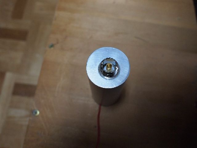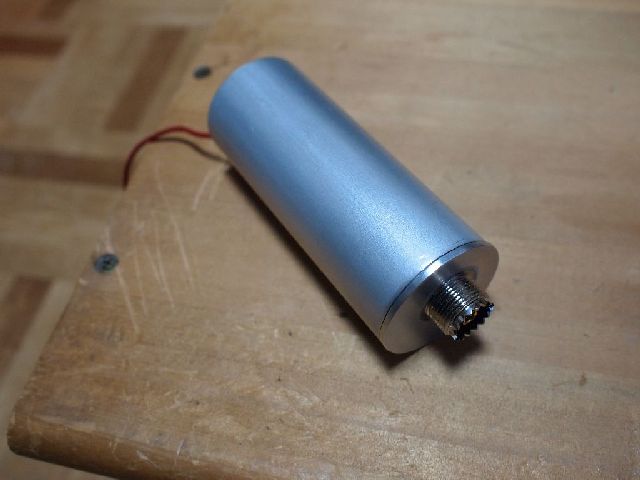 2020/01/15に完成した(はずの)オールバンドアンテナ直下用プリアンプを写真のような 外形40mm×長さ100mm の円筒ケースを作成した。屋外に取り付けの際には自己融着テープで防水処理することになる。