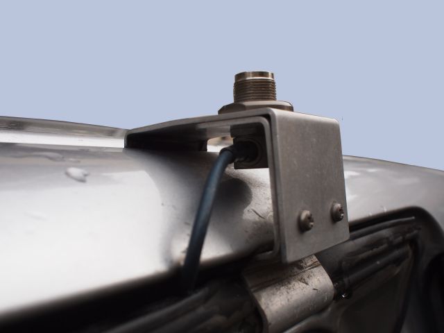 写真は同軸コネクタをはずした状態である。強度的には十分にしっかりしており、7MHz用のモービルアンテナ Comet CA-7HR をつけて高速道路を走って運用していたが全く問題なかった。