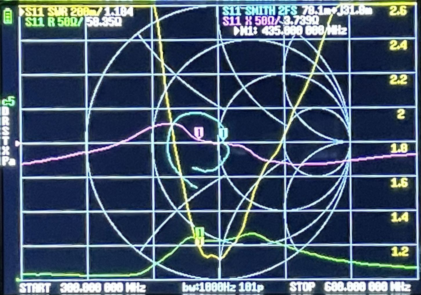 左の写真は一番良好な状態だった時であるが NanoVNAの画面を拡大してみると分かるが430~440MHzのバンド内全域に渡って SWRが1.2以内になっている。