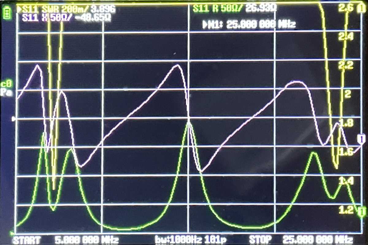 HF帯(5~25MHz)におけるSWR(黄トレース)